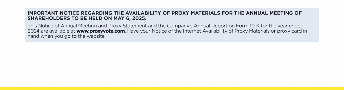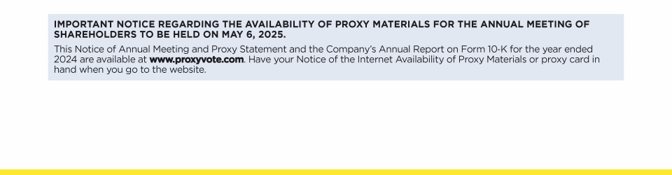 HomeHome | Proxy Statement  | Notice of 2025 Annual Meeting of Shareholders