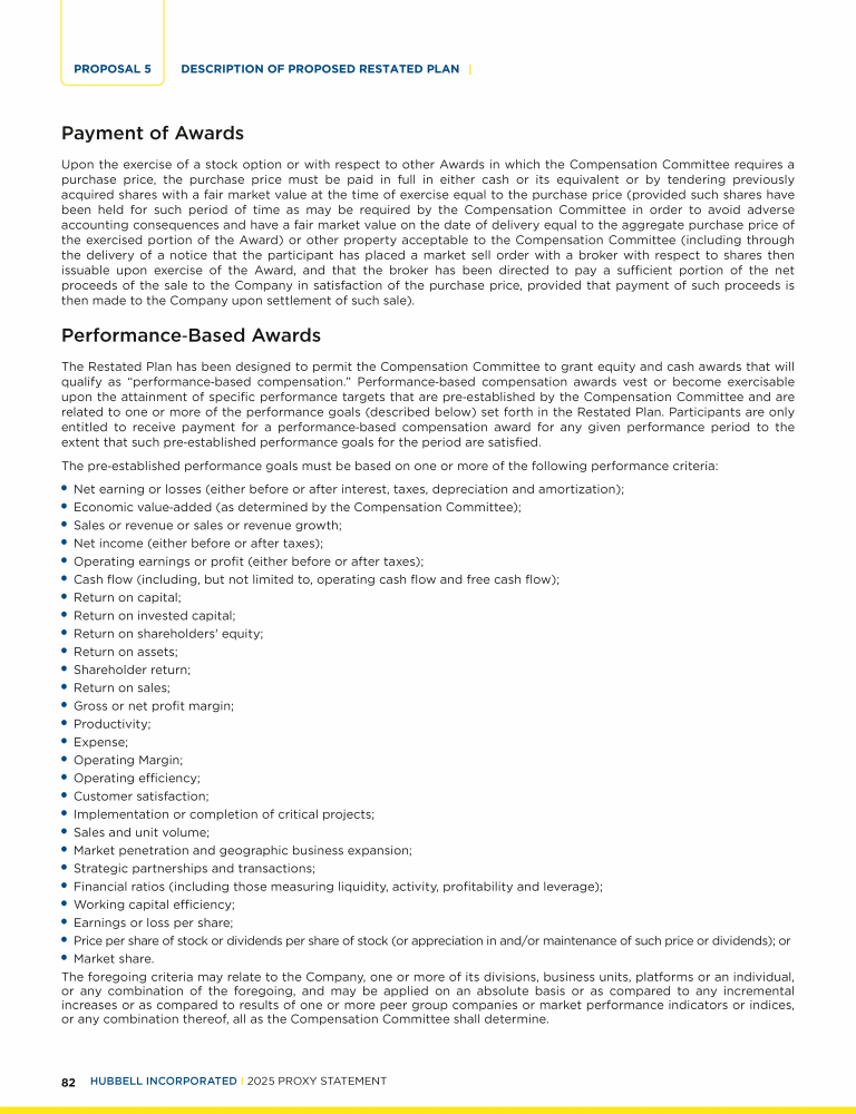 | Proposal 5: Approve the Hubbell Incorporated Incentive Award Plan