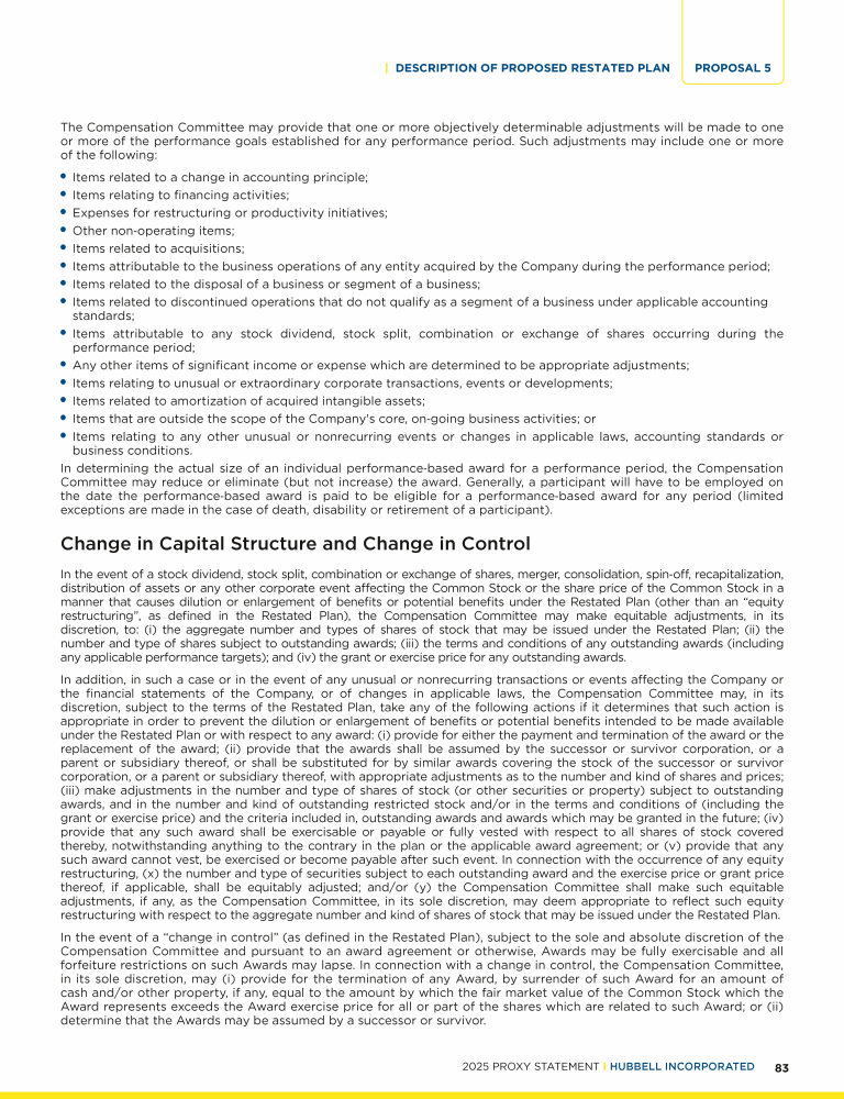 | Proposal 5: Approve the Hubbell Incorporated Incentive Award Plan