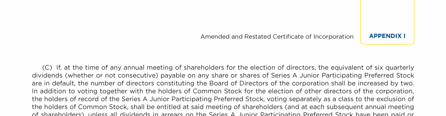| Appendix I - Amended and Restated Certificate of Incorporation