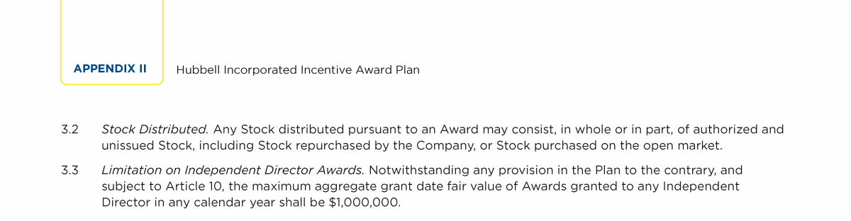 | Appendix II - Hubbell Incorporated Incentive Award Plan