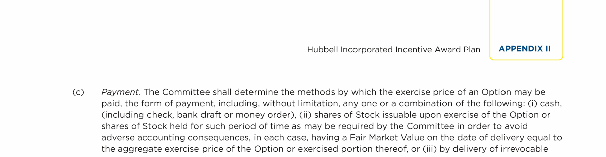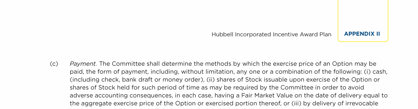 | Appendix II - Hubbell Incorporated Incentive Award Plan