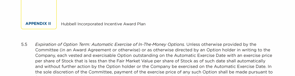 | Appendix II - Hubbell Incorporated Incentive Award Plan