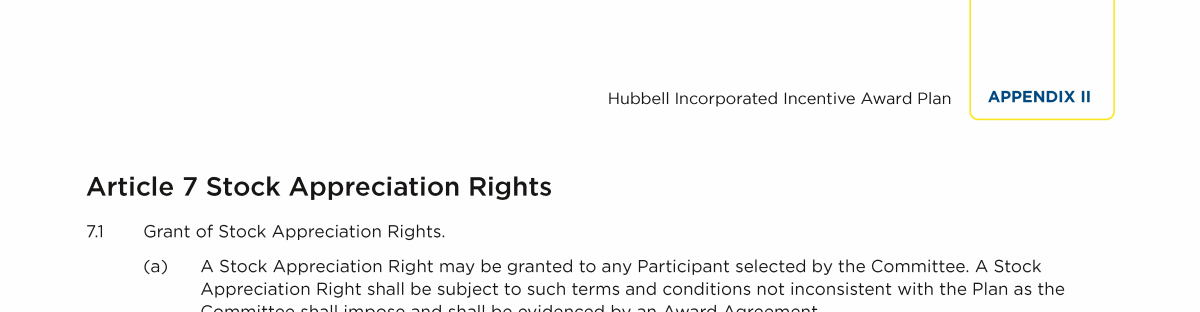 | Appendix II - Hubbell Incorporated Incentive Award Plan
