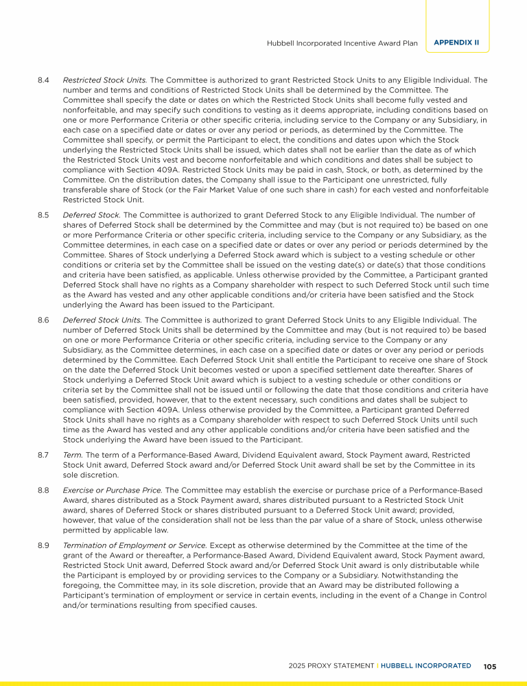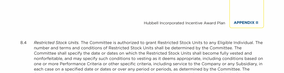 | Appendix II - Hubbell Incorporated Incentive Award Plan