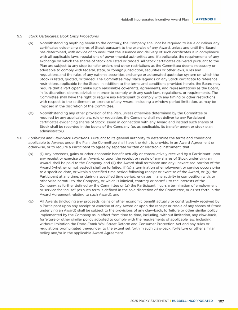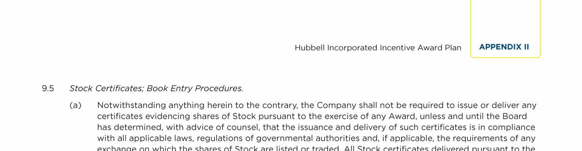 | Appendix II - Hubbell Incorporated Incentive Award Plan