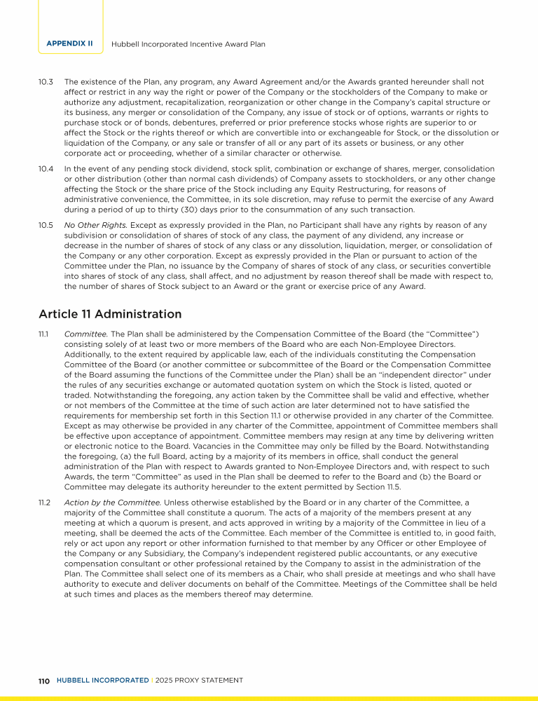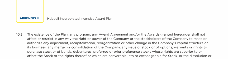 | Appendix II - Hubbell Incorporated Incentive Award Plan