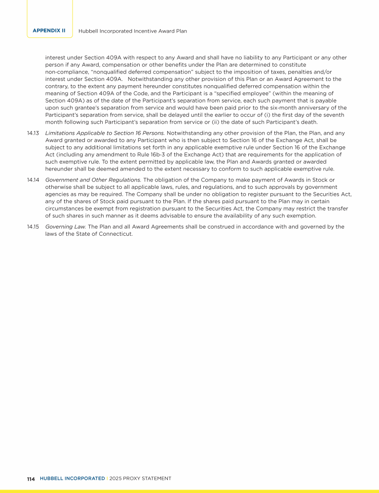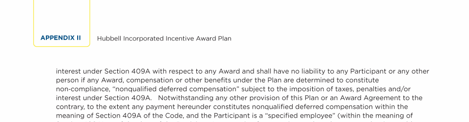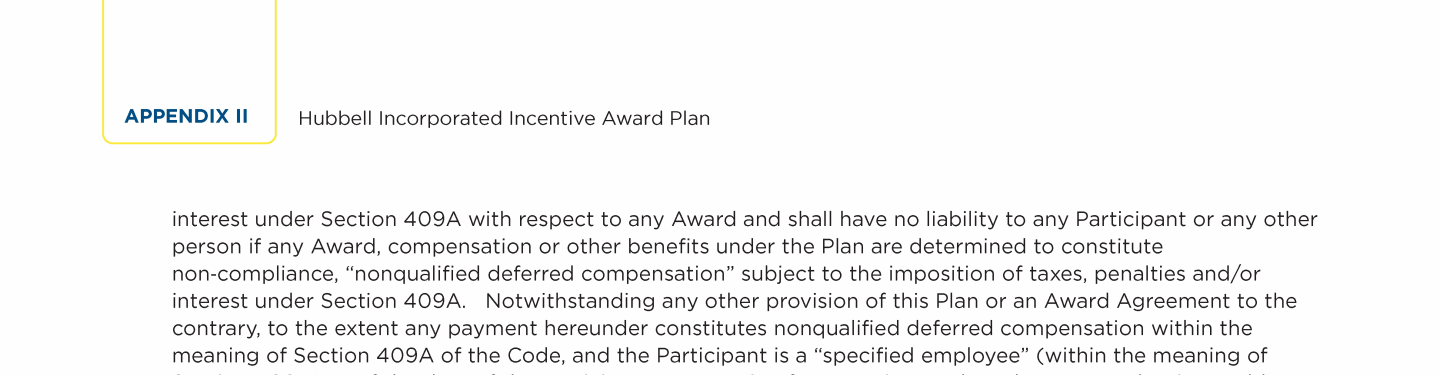 | Appendix II - Hubbell Incorporated Incentive Award Plan