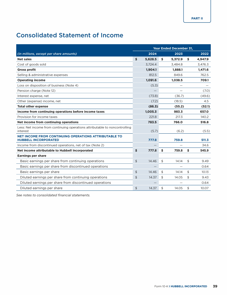 - Consolidated Statement of Income